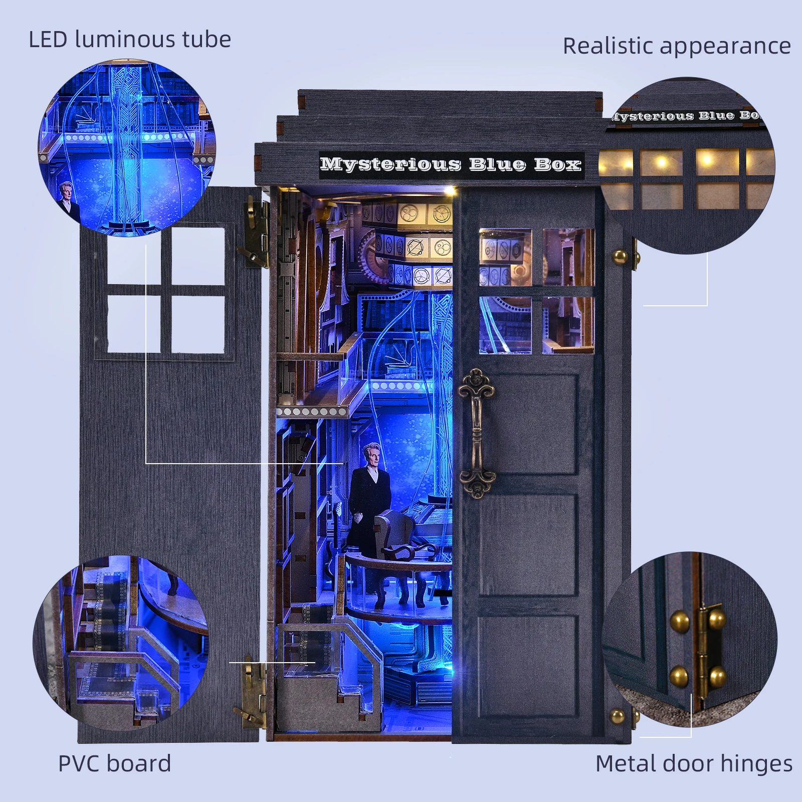 Book Nook Kit Blue Telephone Booth 3D DIY Wooden Puzzle Handmade Bookshelf Dollhouse Model Bookend Building Home Decoration