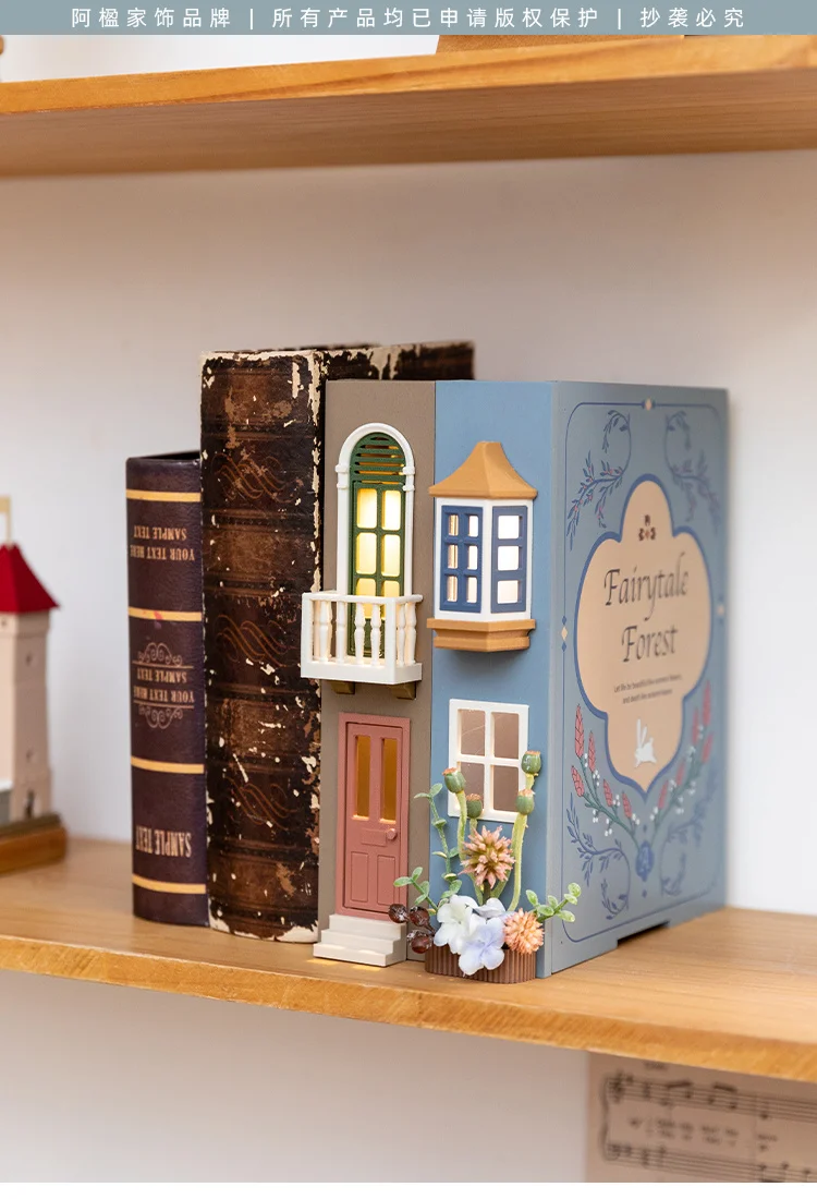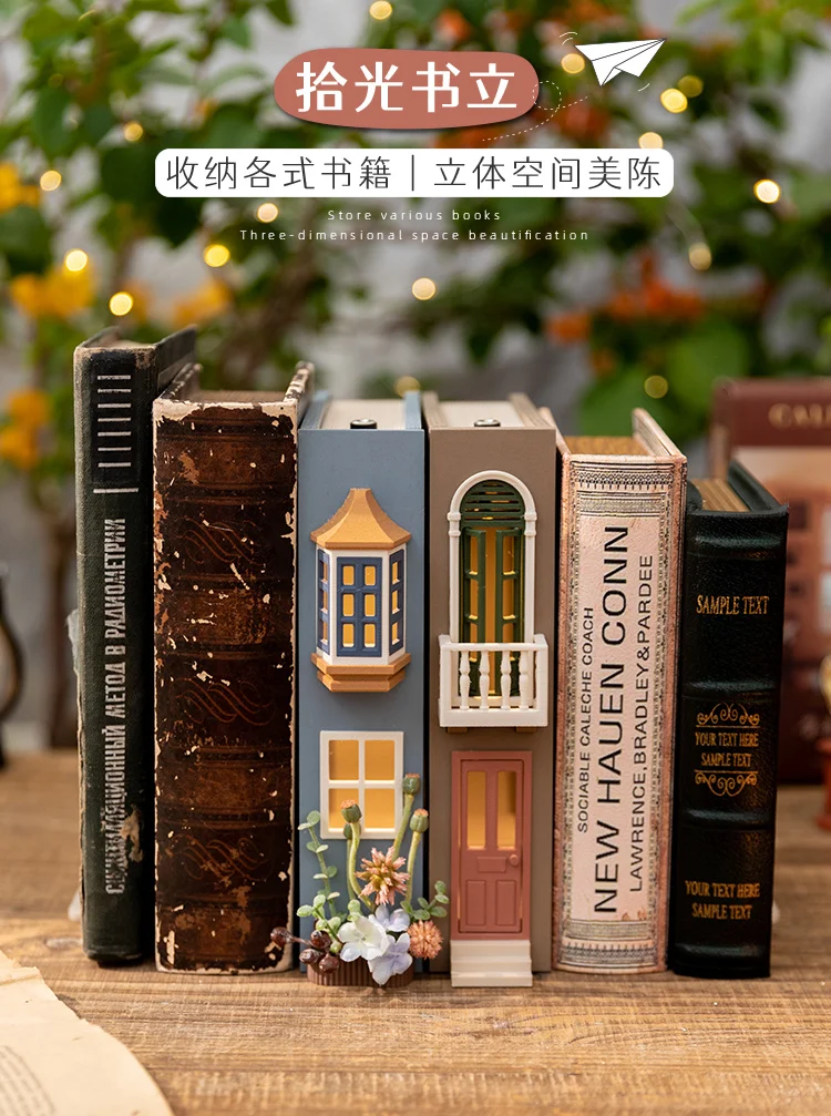Booknook Creative Book Holders Fake Books Bookends Model Kit With LED Light For Bookshelf Insert Decor Miniature Ornament Gift