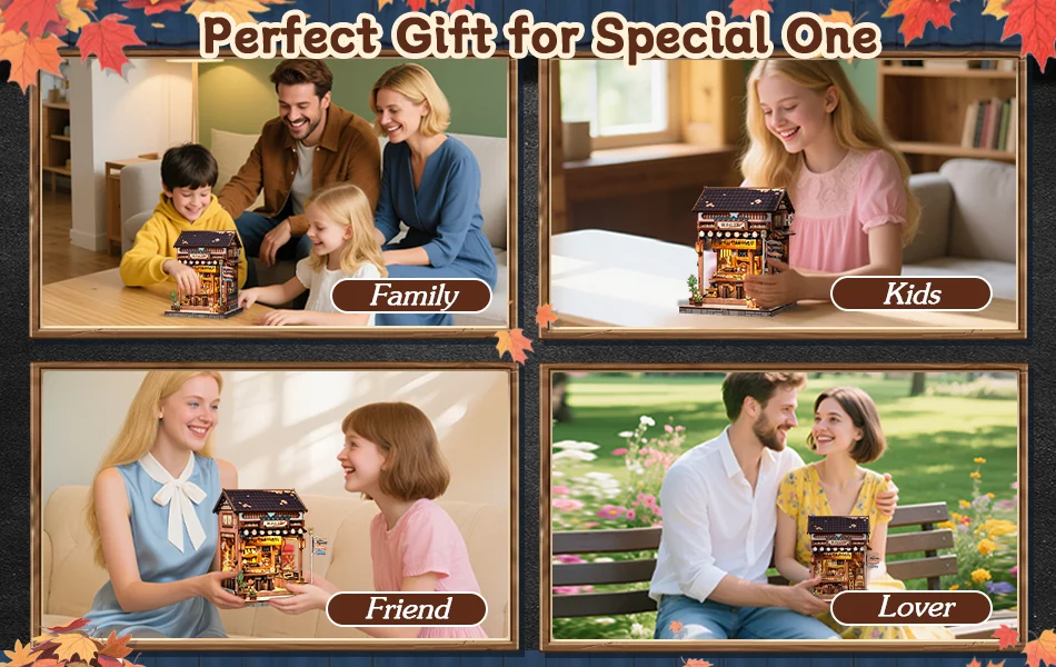 CUTEBEE DIY Book Nook Kit Miniature Dollhouse with Light Wooden Bookshelf Insert Retro Booknook Christmas Birthday Party Gift