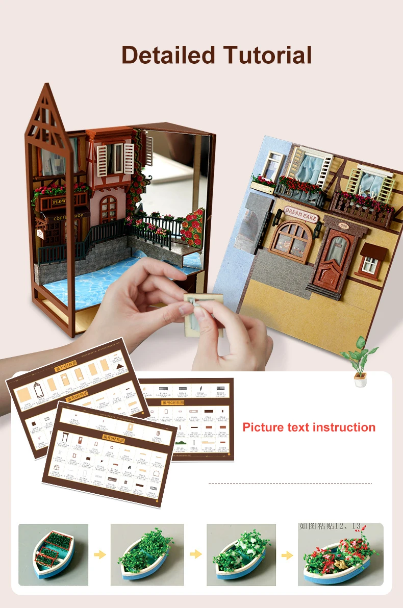 New Book Nook Japanese City Alley Model Building Bookend Bookshelf Insert Bookcase DIY Assemble Toys Child Girl Adult Gift Casa