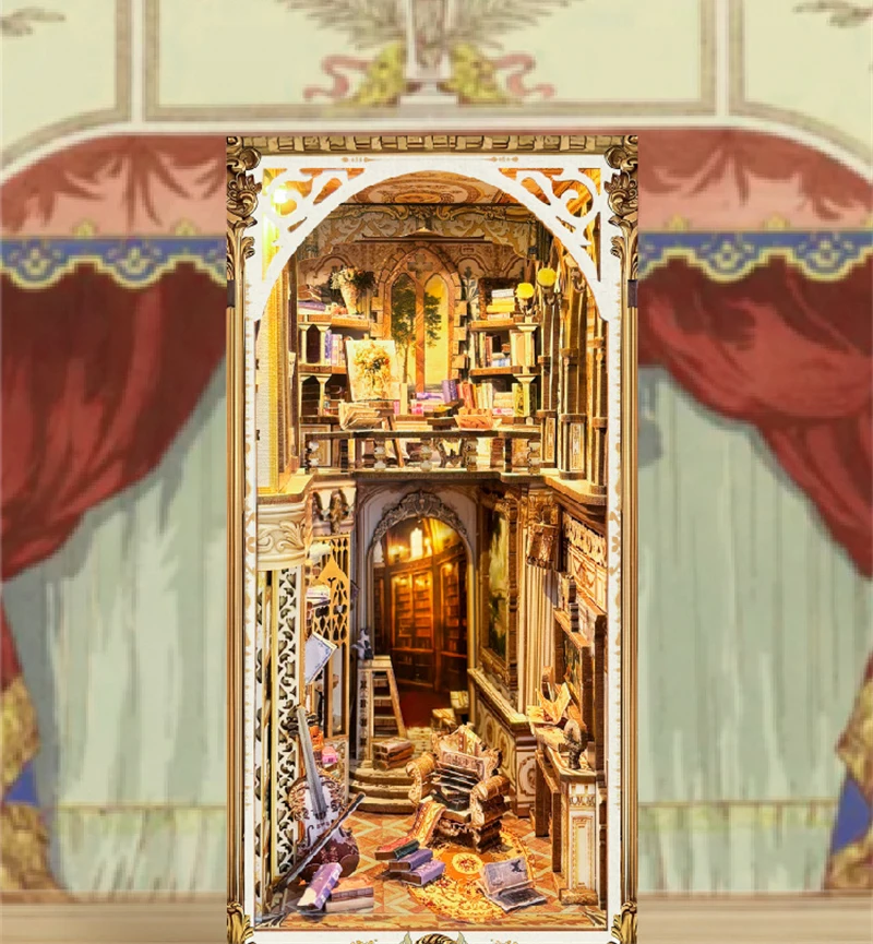 NEW DIY Book Nook Insert Shelf Kits Wooden Miniature Model Kit Baroque Dreams Bookend Assembled Bookshelf Home Decor Girls Gifts